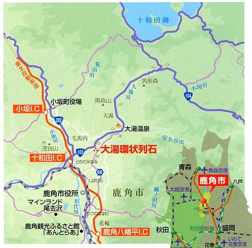 電車:JR花輪線 鹿角花輪駅から秋北バス大湯温泉行に乗車(約35分)大湯環状列石前下車すぐ(510円)
