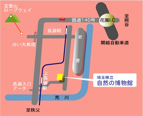 当館は、「日本地質学発祥の地」として知られる長瀞町にあって、常設展示は、動物・植物・地質などの資料により「埼玉の自然とその生い立ち」を紹介しています。また、野外観察会など多彩な教育普及活動も行っています。