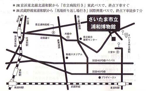 JR北浦和駅東口から「市立病院行き」東武バス終点下車すぐ:JR東浦和駅から「馬場折返し場行き」国際興業バス終点下車徒歩7分