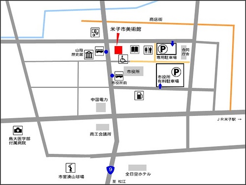 ・米子自動車道・米子インターから約20分(米子市美術館・米子市立図書館・山陰歴史館専用駐車場をご利用ください)