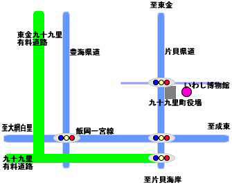 九十九里鉄道バスで九十九里役場下車徒歩1分:東金九十九里有料道路真亀ICより7分