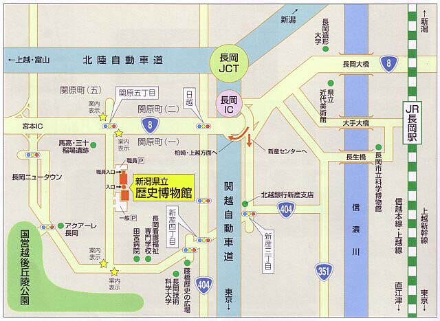 JR長岡駅大手口から越後交通バスで約40分、博物館前下車。