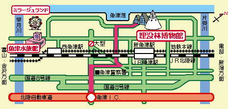 JR北陸線魚津駅下車徒歩20分、車で5分:北陸自動車道魚津ICより10分