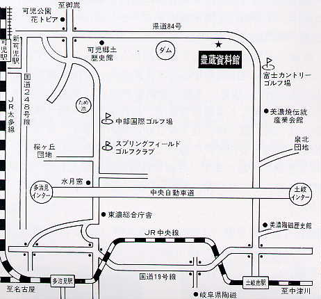 【電車でお越しの場合】 ・JR名古屋駅→JR中央本線「多治見駅」→JR太多線「可児駅」下車、タクシー約15分 ・名鉄名古屋駅→名鉄犬山線→広見線『新可児駅』下車、タクシー約15分 【バスをご利用の場合】 ・毎日/電話で予約バス(デマンド運行)要電話30分前予約 可児駅から「№140 荒川豊蔵資料館」下車 ・土曜日、日曜日、祝日、振休/「おでかけしよKar」Kバス(巡回) 名鉄広見線明智駅から「荒川豊蔵資料館」下車 *詳しくは可児市HPをご覧ください。 【車でお越しの場合】 ・東海環状自動車道「可児御嵩IC」から国道21号、県道381号を南へ。県道84号線を土岐市方面へ約8km ・東海環状自動車道「五斗蒔スマートIC」から県道84号線を可児方面へ約3km