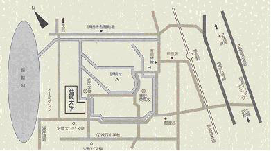 JR彦根駅よりバスで約10分、「栄町」(滋賀大まで徒歩5分)または「滋賀大口」(徒歩1分)下車、タクシーで約5分、徒歩で約25分 、JR米原駅よりタクシー約15分