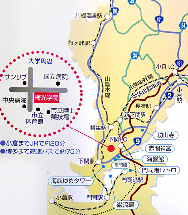 JR下関駅前バス停3・6番乗車、「東駅」下車徒歩1分。