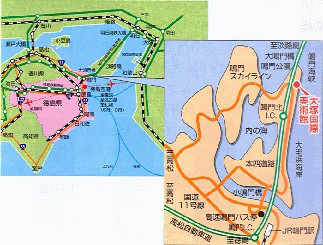 自動車:鳴門北ICから約3分、専用駐車場から美術館までシャトルバス(無料)を運行:公共交通JR徳島駅→路線バスで鳴門公園行き大塚国際美術館前下車約55分、徳島空港→路線バスで鳴門公園行き大塚国際美術館前下車約25分、JR鳴門駅→路線バスで鳴門公園行き大塚国際美術館前下車約15分、高速鳴門バス停→路線バスで鳴門公園行き大塚国際美術館前下車約15分